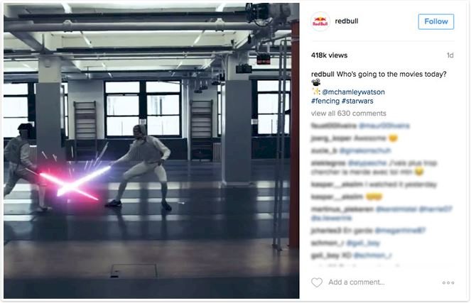 Az elmúlt évek során nem egy új film került a mozikba a Csillagok Háborúja univerzumából, és ezek sikereit (vagy legalább is a bemutatásuk előtt keltett izgatott várakozást) számos márka is igyekezett meglovagolni. Így tett például a Red Bull is, ami fogott valamit, ami népszerű a nyilvánosság számára (Csillagok Háborúja) és kombinálta azt saját márkájával, ami ez esetben a filmekhez igencsak passzoló vívás volt. Az eredmény? Egy vizuális, szórakoztató, pörgős kampányvideó.