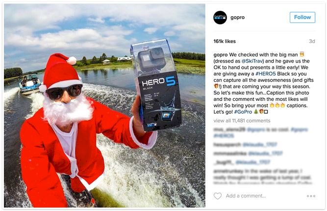 A GoPro egy olyan sportos influencerrel állt össze (a vízisíelő Travis Fisherrel), akinek rajongói értelemszerűen a GoPro ideális célközönségéhez tartoznak. Ez már önmagában egy jó pont a GoPrónak, az azonban már csak hab a tortán, hogy Fisher télapónak öltözve mutatta be követőinek az akkoriban még újnak számító Hero 5-ös modellt, miközben éppen a hullámokat hasította.