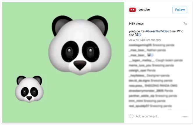 A YouTube egy rettenetesen egyszerű, mégis nagyon kreatív és hatásos kampánnyal állt elő, ami a #GuessThatVideo („találd ki a videót”) nevet kapta. A kampány rövid Instagram videókból állt, amelyekben hangulatjelekkel ábrázolták a YouTube-ra feltöltött legnépszerűbb videókat, a felhasználók pedig kitalálhatták, hogy éppen melyikről van szó.